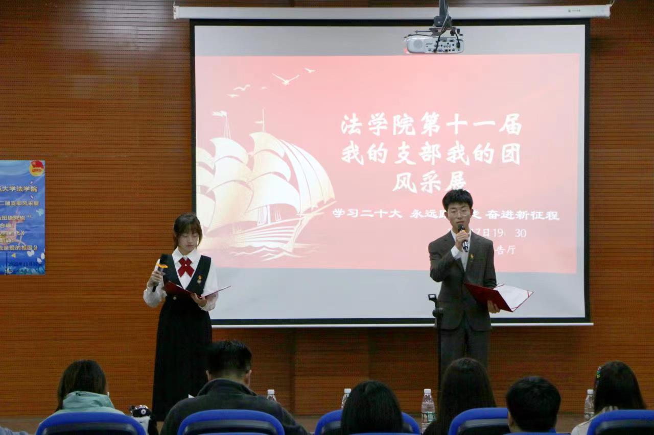 活动分为团歌合唱、团支部回顾、团支部风采展、嘉宾点评颁奖四个环节。2020级一班团支书陈美茜在活动中介绍班级团支部建设成果,回顾往届团日活动。2021级一班团支部进行线上支部展示和风采表演。2022级各班团支书结合学院特色和班级特色,从思想教育,组织建设,学风建设和特色设计几个方面介绍各支部建设成果,展示了各支部的管理制度和建设特色。各团支部通过歌舞、朗诵等才艺表演充分展现支部青春风采,表现出各支部建设的活力。
