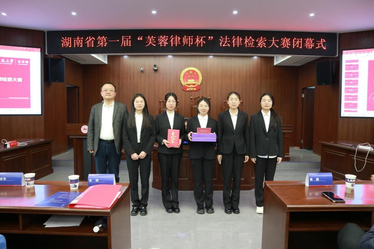 下午5时,湖南省第一届“芙蓉律师杯”法律检索大赛在热烈的氛围中迎来闭幕。闭幕式伊始,张辉发表讲话。他对大赛的成功举办表示热烈祝贺,高度肯定了此次比赛对提升学生法律素养的积极意义,鼓励同学们将比赛中积累的经验运用到未来的学习与实践中。接着,李立静在发言中回顾了大赛的精彩瞬间,鼓励同学们持续深耕,利用好《大数据与法律检索》慕课与暑期学校的学习资源,不断提升法律检索能力。随后,本次法律检索大赛的发起人黄文旭宣布了获奖名单,来自湘潭大学的highfive队(队长廖清滢)获得此次大赛的冠军,其他获奖队伍也依次登台领奖。