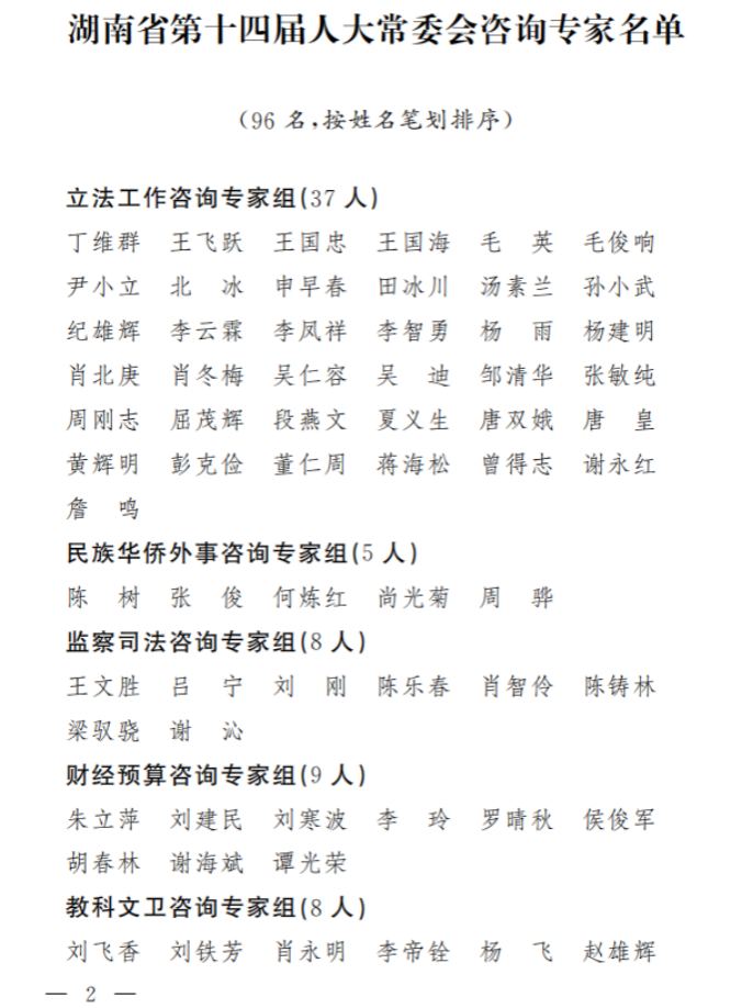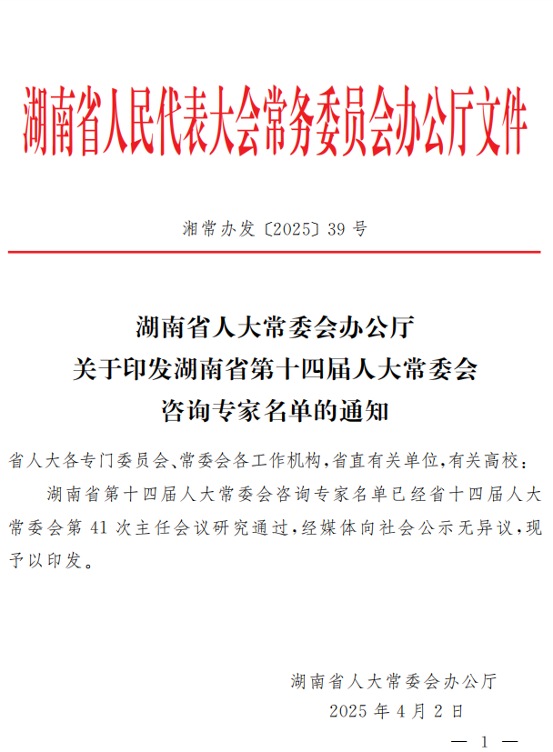 作为相关研究领域的杰出代表,入选的专家学者将以他们深厚的专业知识和丰富的实践经验,为湖南省人大常委会提供高质量的政策咨询和立法建议,为立法科学化和司法制度优化贡献力量。