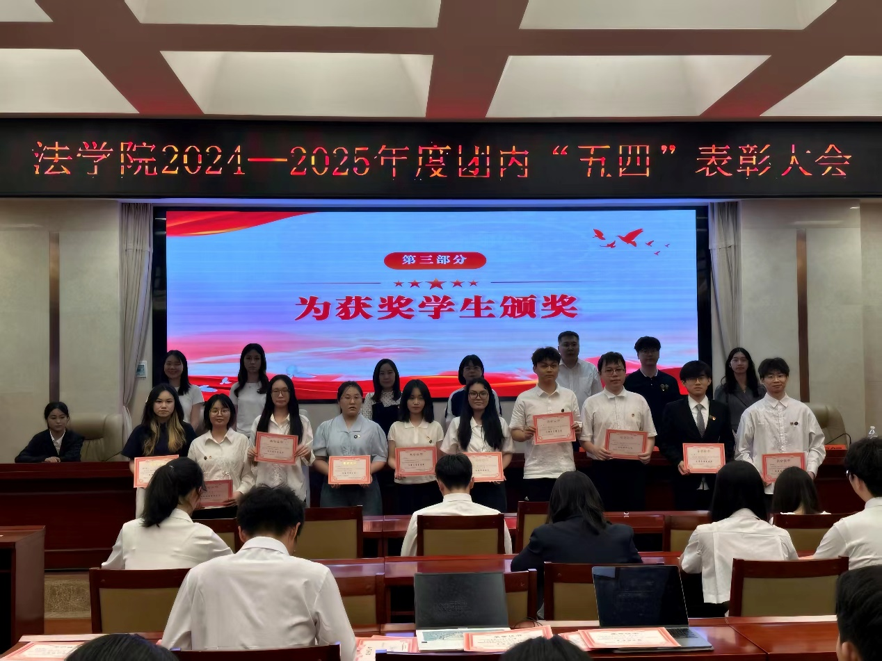 (通讯员 范峥 宋玫璟 李奕瓯)为大力弘扬五四精神,表彰先进集体与个人,6月5日晚,永利集团在205报告厅举办2024-2025年度五四团内表彰大会。永利集团副院长何燕华,党委副书记曹俊峰,法硕办负责人罗昊,学工办负责人胡钰琬,研究生办主任王丹,团委负责人廖星,2021级辅导员许华燕,2023级辅导员张宁莎出席此次大会。2024级本科生张朝洋担任主持人。