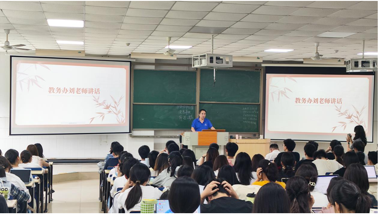 刘轶就期末考试相关事项进行强调,提醒同学们提前做好考试安排,严格遵守考场纪律,携带本人身份证件,提前到到考场,并提示转专业学生特别注意考试安排差异。他着重介绍了考试违规的情形和相应后果,以及申请缓考的流程。