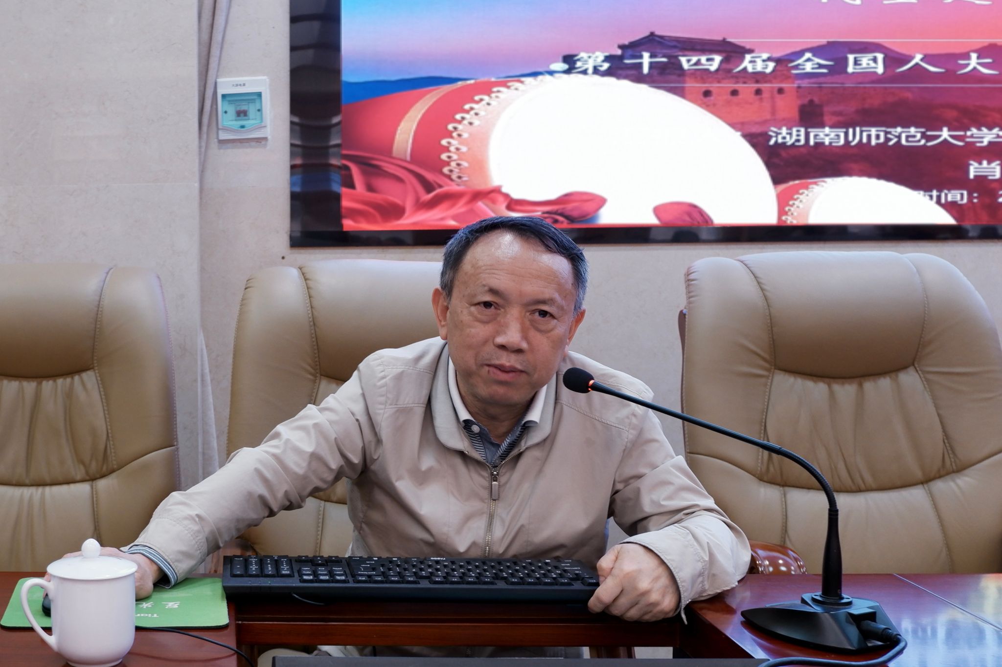 全国人大代表、永利集团博士生导师肖北庚教授作题为“扎实推进高质量发展,中国式现代化建设步伐坚定有力”的辅导报告,传达第十四届全国人大三次会议精神。他介绍了2025年参与全国两会的经历和感受,并将自己对政府工作报告的总体感受总结为四点:“备受鼓舞的是综合国力日益增强”,“最振信心的是政策力度空前未有”,“感受强烈的是任务部署在重从新”,“深有体会的是调控举措精准有力”,并深入展开了讲解和分析。肖北庚依次对我国计划与预算报告、全国人大常委会工作报告、最高人民法院工作报告的要点进行提炼和解读,他建议大家将国家战略与一线教学、科研实践密切结合。